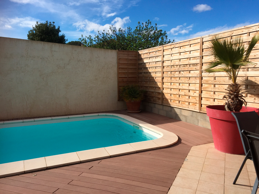 Vous vous relaxerez au milieu d’une verdure chatoyante, palmiers, rosiers, oliviers, plantes aquatiques et méditerranéennes agrémentée d’un joli bassin aquatique.